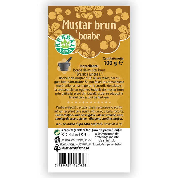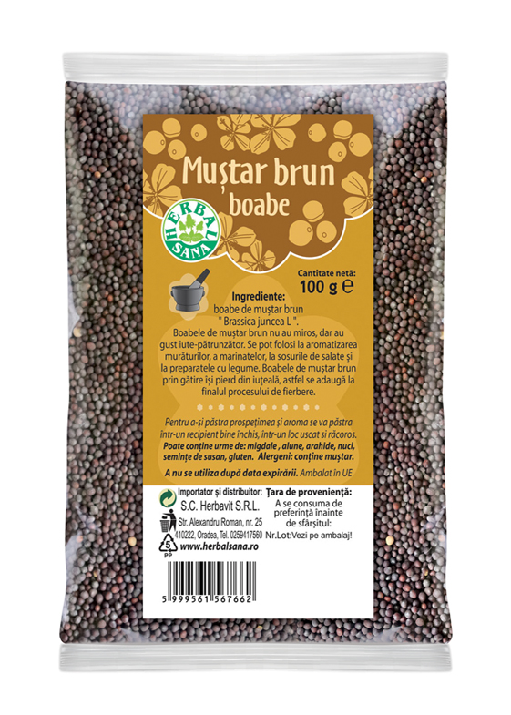 Ingrediente: boabe de muștar brun „Brassica juncea L”.